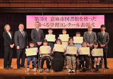 | 『第3回嘉麻市図書館を使った 2月7日に「第3回嘉麻市図書館を使った調べる学習コンクール」の表彰状授与式を開催しました。参加者を前に子どもたちは緊張の面持ちでしたが、堂々と賞状を受け取り、しっかりと作品についてインタビューに答えてくれました。受賞したみなさま、本当におめでとうございます! 応募総数1250作品中、受賞作品を含む19作品は、第29回図書館を使った調べる学習コンクール(主催:公益財団法人図書館振興財団)に推薦させていただきました。結果、赤石